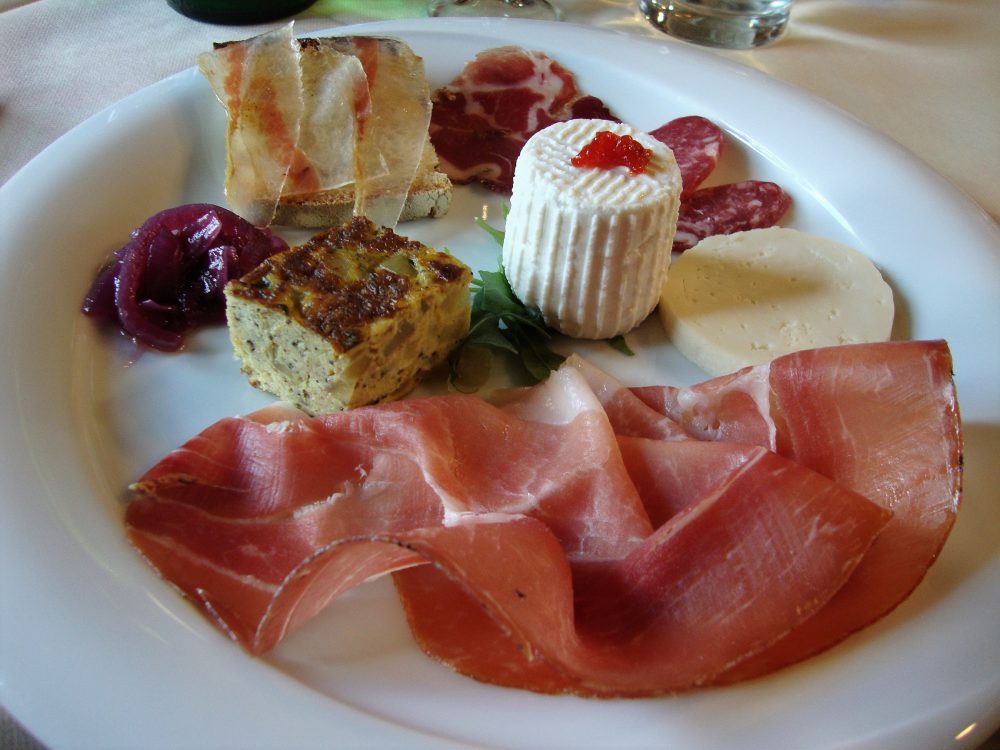 L’antipasto in apertura, tra salumi e tipicità casearie come la ricottina di pecora, con cipolla in agrodolce e frittatina alle erbette, viene corredato da tegamini con zuppe varie, tra cui anche il soffritto e mini involtini di cotiche suine, ma il focus è diretto ai ceci e alle lenticchie del posto, con extravergine molisano.