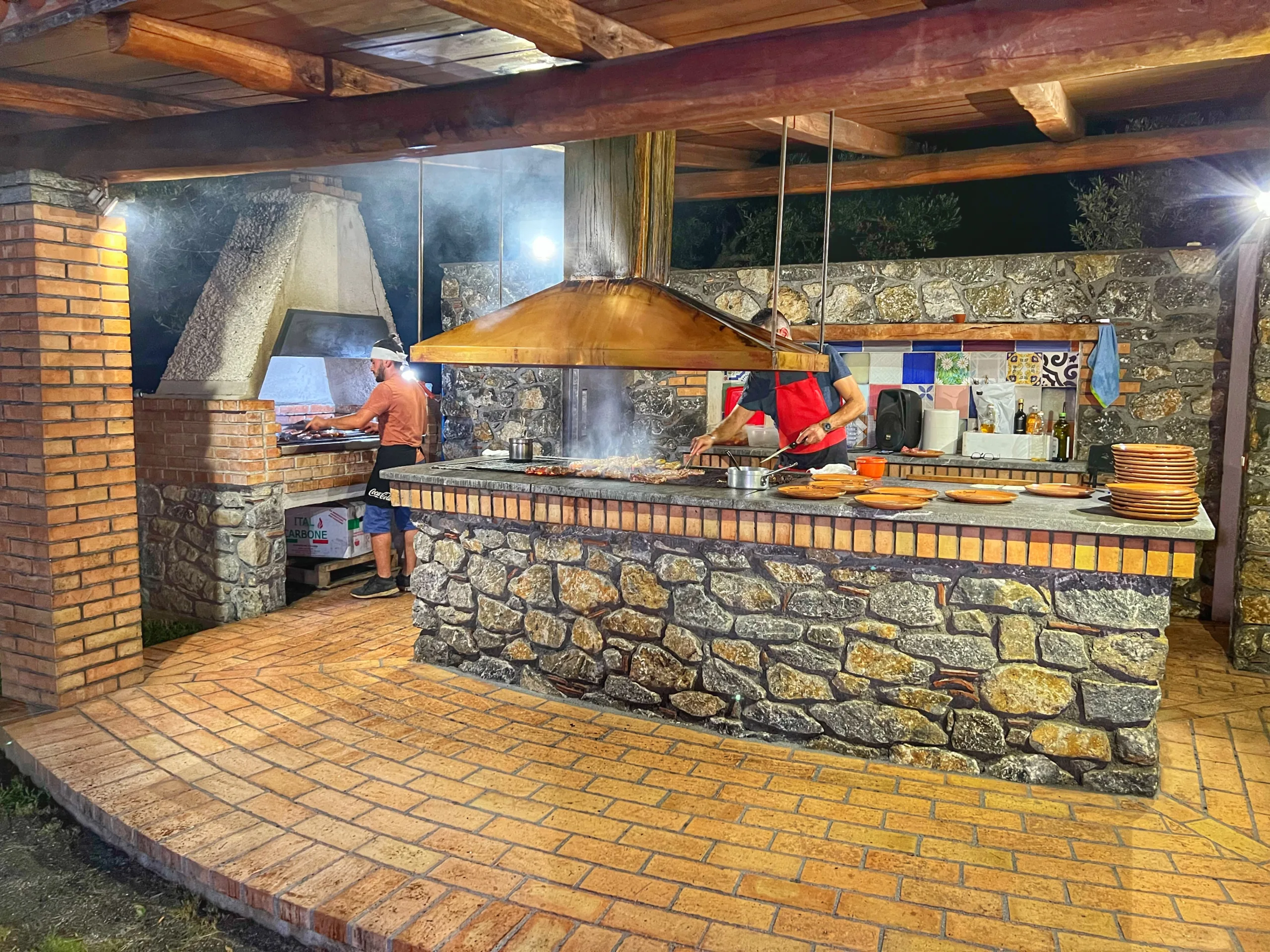 Il cuore pulsante della sala esterna è la griglia a vista, dove le carni locali sfrigolano regalando un profumo che avvolge i commensali non appena varcano la soglia del ristorante.