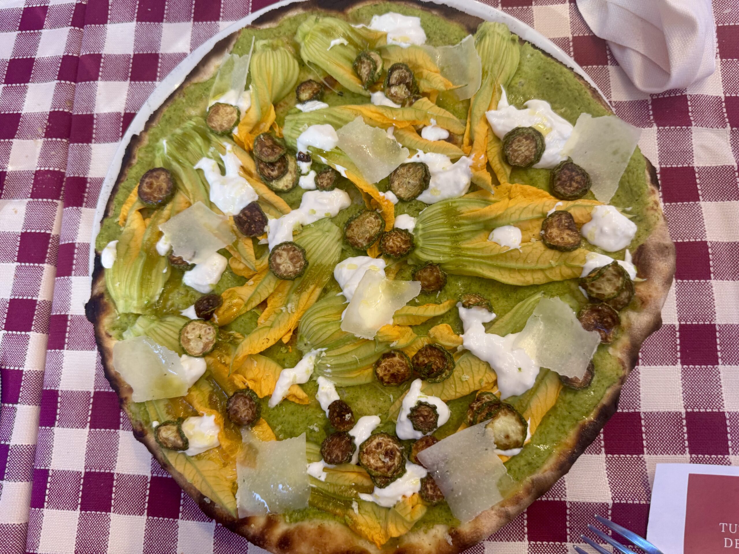 Pizza con zucchine, fiori di zucca, stracciata, Pecorino Romano DOP – Romeo 13/6/2025 Torna a: Trattoria Romeo al Testaccio: il menù dedicato al Pecorino Romano DOP, ingrediente simbolo della cucina capitolina Pizza con zucchine, fiori di zucca, stracciata, Pecorino Romano DOP – Romeo← PrecedenteSuccessiva →