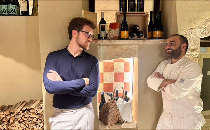 Andrea, dopo anni trascorsi in cucine importanti all’estero, in ristoranti Michelin e realtà di alto livello, ha scelto di tornare a casa e farlo con una trattoria. Una scelta che incuriosisce, perché il know-how acquisito non si perde, si rielabora. E in questa trattoria si avverte quel quid in più, fatto di tecnica silenziosa e misura. In sala Antonio, sommelier e alter ego dello chef, guida con discrezione, costruendo un dialogo continuo tra cucina e vino.
