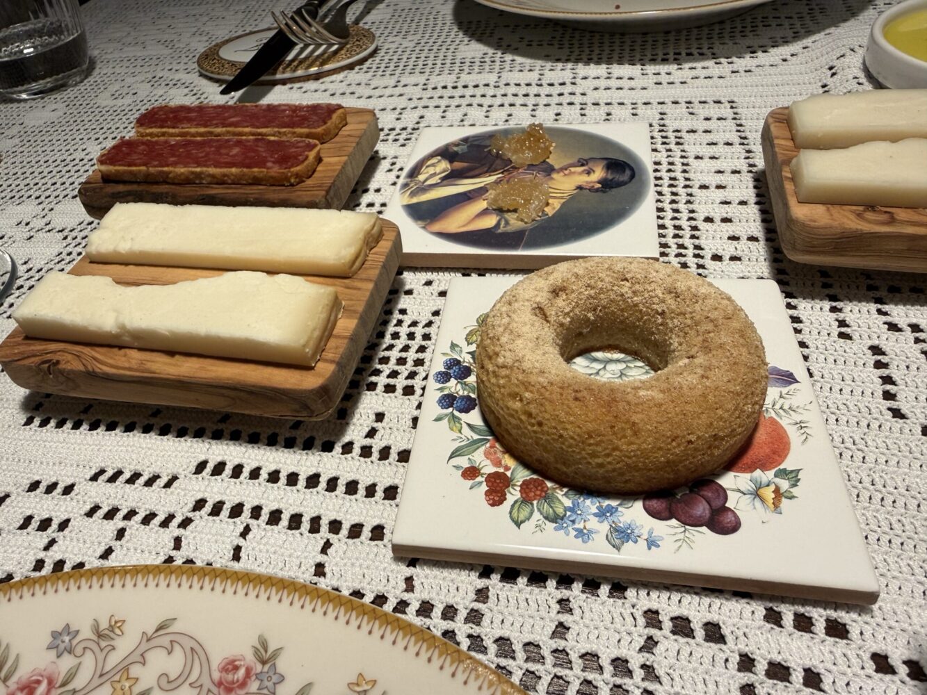 Il percorso di salumi e formaggi è accompagnato da confetture e da una ciambellina realizzata con la farinella, simbolo povero dell’entroterra barese.
