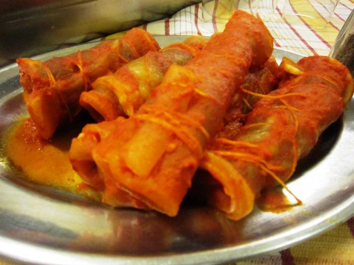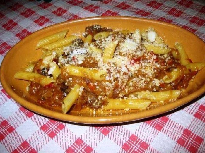 Delizioso antipasto con crocchè di patate, involtino di melanzane e mozzarella impanata e fritta, tutto rigorosamente di casa, come si faceva una volta. Tra i primi il classico ragù, la “puttanesca”, la minestra di fave e cicoria, verza e riso. Secondi tradizionali, polpettone al forno, “braciola” imbottita con formaggio pecorino, aglio, prezzemolo, passe e pinoli. Per gli stomaci “hard” c’è la “braciola” di cotica di maiale con contorno di croccanti “friarielli” con aglio, olio e peperoncino.