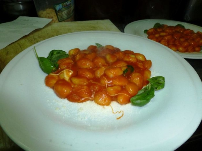 Beh si è fatta ora di pranzo e allora sosta nella prima Trattoria, Da Carmine ai Tribunali. Questo locale vanta quasi un secolo di storia, è gestito dalla terza generazione della famiglia Romano ed era originariamente una mescita, ovvero un locale dove acquistare o bere vino sfuso e altri generi alimentari a peso (pasta, legumi, zucchero, caffè, olio con il tipico “misurino”, uova, conserva di pomodoro, olive, burro etc ). Nel 1967 il locale si trasformò in cantina – Vini e Oli con l’offerta di pochi classici piatti caldi. Nel 1995 la gestione passa ai figli di Carmine con l’aiuto di mamma Antonietta. Qui potremo degustare i classici antipasti a base di verdure: “parmigiana di melanzane”, “le zucchine alla scapece” , i mitici “friarielli” (tipo di broccoli di foglia coltivati solo in provincia di Napoli) dall’indimenticabile gusto amarognolo e piccante. Tra i primi piatti ci sarà l’imbarazzo della scelta tra “ragù” (il famoso “rraù” di Eduardo De Filippo), la “genovese”, la pasta con la ricotta, gli gnocchi, “pasta e patate con provola etc.