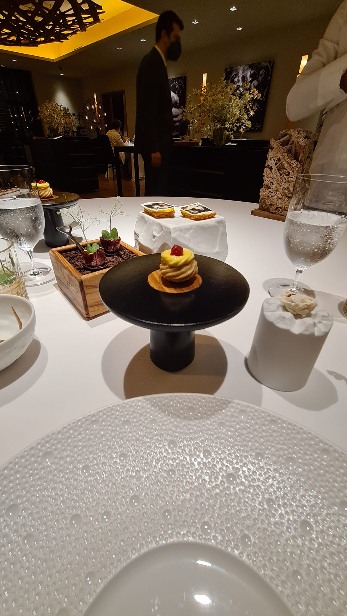 Il carrello dei vegetali da solo vale il viaggio, l’ho travato da subito geniale. Proporre delle preparazioni così lunghe e complesse, esplorare le potenzialità del mondo vegetale è un lavoro raffinato di tecnica, ma anche umanistico, avanguardistico e ironico. Servire una mozzarella, fatta con il latte di mandorla in terra di mozzarelle di bufale è il segno della grande ironia e della voglia di provocare, che non deve mai mancare per rendere un’esperienza a tavola completa.