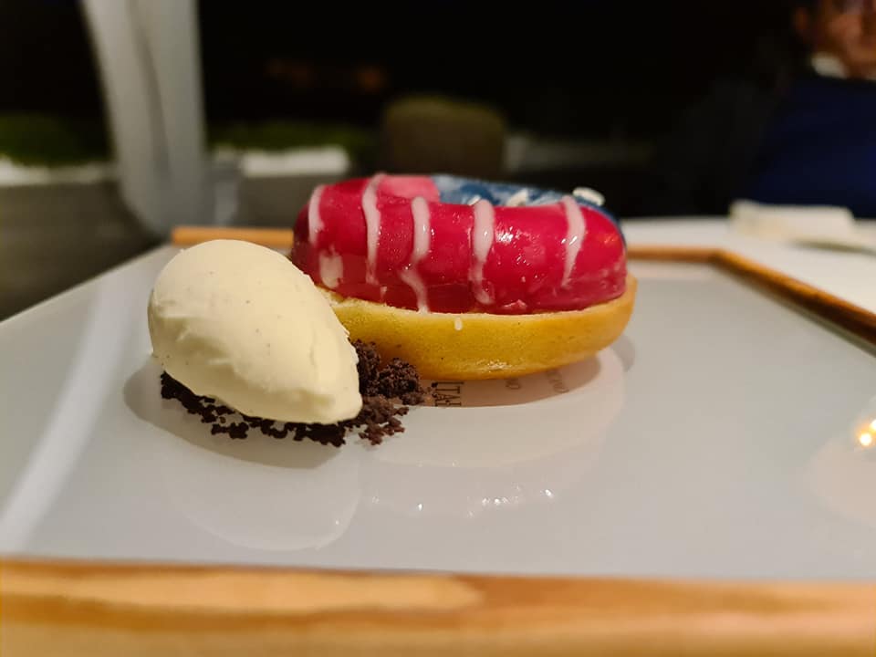 La quaglia, con sentori di affumicatura torbata e accompagnata dalle melanzane è la giusta chiusura per la parte salata, sempre in crescendo nei sapori, deliziosa.