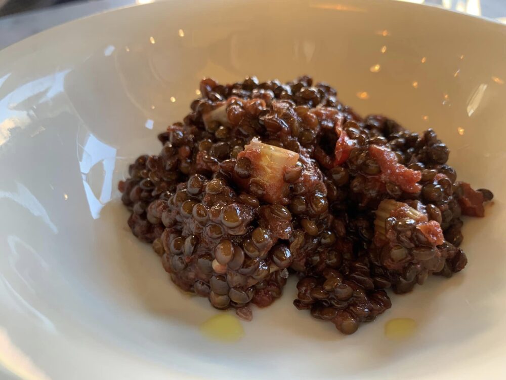 Proseguiamo con un excursus “vegeteriano” che anticipa i primi. Manuel riesce dire la sua anche sul fronte della cucina vegetale: il cipollotto giarratano gratinato al forno è una ventata di freschezza mediterranea e le marignane (melanzane) marinate riescono a farsi apprezzare per ricchezza di sapori nonostante il ritorno dell’aglio sia a tratti sovrabbondante.