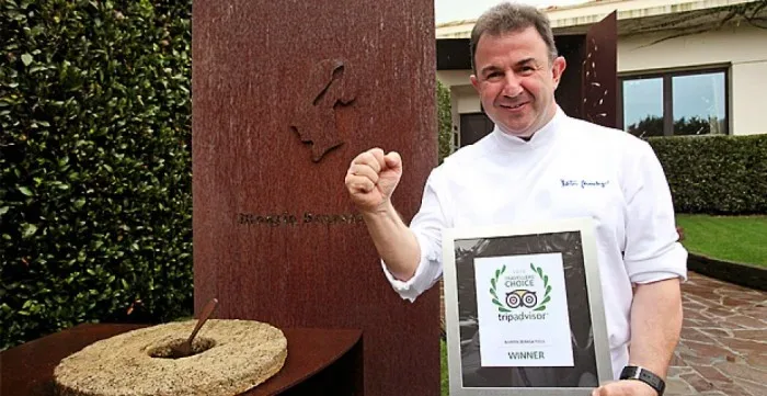 Martin-Berasategui-Tripadvisor 8/11/2015 Torna a: Martin Berasategui al top per Tripadvisor e Michelin! Martin Berasategui con il premio di Tripadvisor