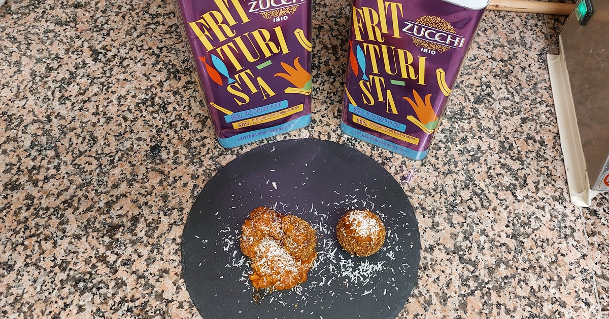 Scaldare l’olio in una friggitrice portandolo ad una temperatura di 170-175 °C ed immergervi le sfere, friggendole per 5/8 minuti, fino a completa doratura.