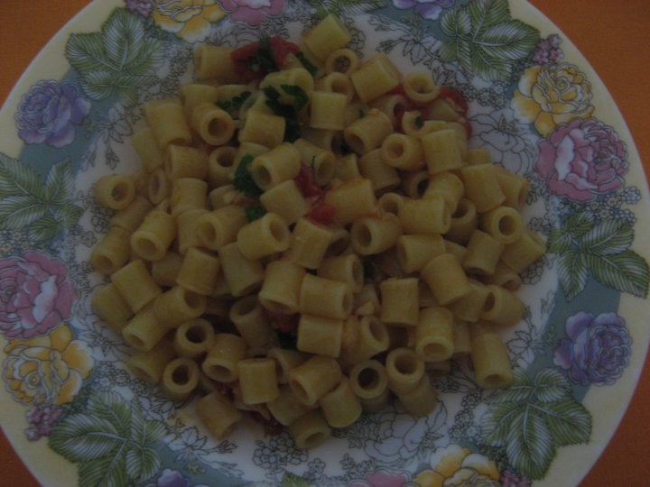 Ritagli di stoccafisso, 2 cucchiai a testa di olio extravergine d’oliva vesuviano (ho utilizzato quello di Cantina del Vesuvio), 3 pomodorini del piennolo del Vesuvio (si possono utilizzare anche quelli in barattolo), 100 gr. a testa di tubettoni (ho scelto quelli del pastificio Faella di Gragnano), uno spicchio di aglio, del peperoncino piccante, prezzemolo fresco.