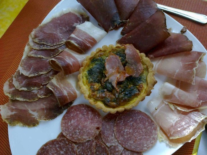 Iniziamo con una tartè di ortica con salumi di Maremma e cinta senese e con un misto di antipasti, tra i quali un buon tortino di baccalà. Il burro e il grasso di formaggi e salumi utilizzati hanno però la meglio sulle verdure e sul pur ottimo olio extravergine della Tuscia che ci sarebbe piaciuto più valorizzato.