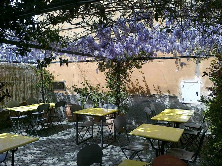 Siamo nel centro storico di Tuscania, bellissimo borgo della Tuscia viterbese in una stradina di fronte al parco Torre di Lavello. Il ristorante ha una piccola sala molto curata e dei tavoli in ceramica all’esterno sotto un meraviglioso pergolato di glicini con affaccio sul verde del parco. In lontananza uno dei panorami medioevali più suggestivi d’Italia.