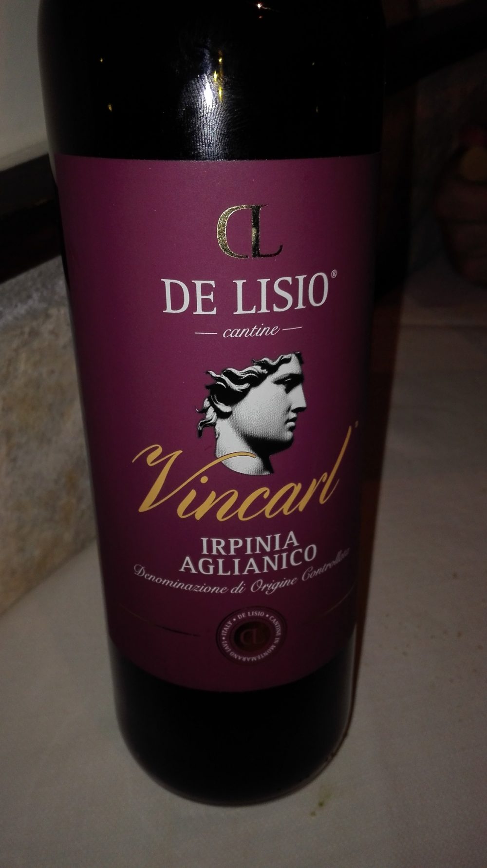I Fratelli De Lisio producono circa 10.000 bottiglie suddivise in quattro etichette; il Vincarl 2012 – Irpinia Aglianico Doc, è il vino legato alle prime esperienze di marketing di Carlo (uno dei fratelli) ha un naso variegato con note di frutta rossa, carrube, note balsamiche e di tabacco; il sorso è, invece, giovane, fresco e giustamente tannico.