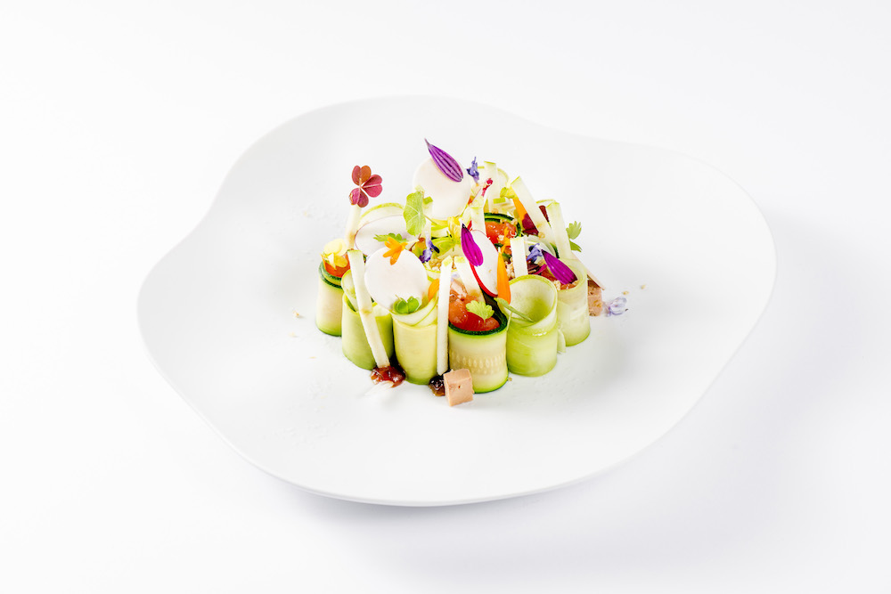 Stefano Baiocco marchigiano di nascita ma vive sul lago di Garda dove lavora presso il ristorante Villa Feltrinelli ci propone piatti di elevata professionalità e tecnica come l’Insalata di Trota salmonata,