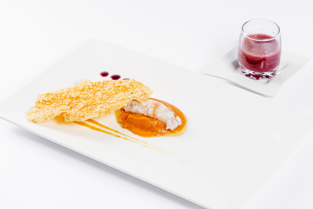 Scampi al vino e lavanda, Cicala di Mare e crema di finocchi