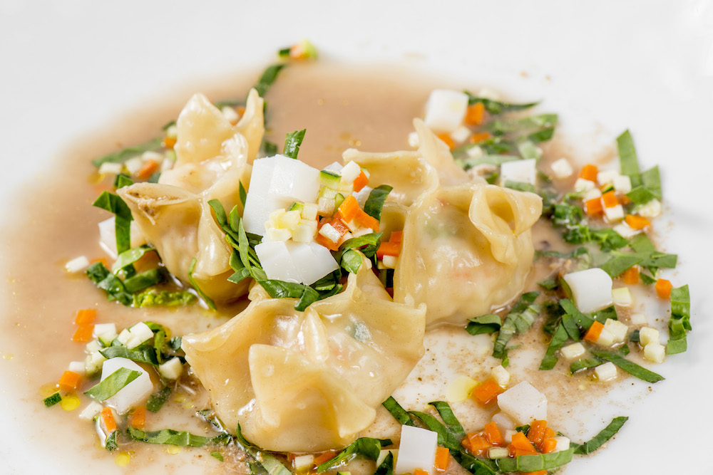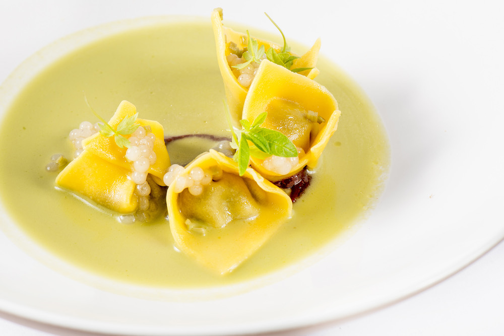 Recanati – Brodo di tenera ascolana, ravioli di tordo allo spiedo, pomodoro e limone