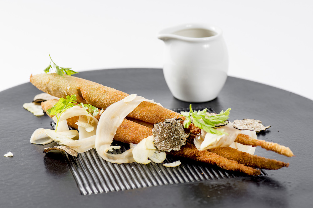 Al ristorante Nostrano di Stefano Cioti a Pesaro bisogna andare, con la sua maestria ha nobilitato materie prime dimenticate come le Barbecche fermentate e tartufo, radici che sfamavano i contadini della zona realizzando una vera opera d’arte,