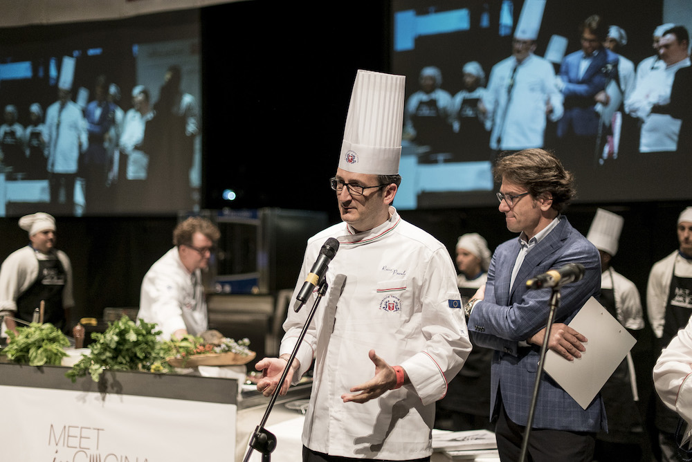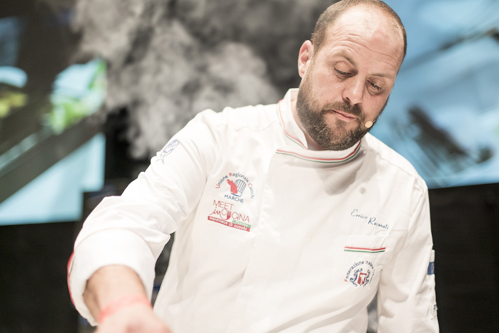 L’evento si è svolto nella splendida location del Teatro La Fenice di Senigallia grazie alla collaborazione con l’Unione Regionale Cuochi Marche, nella persona di Luca Santini dinamico presidente della regione che ha saputo coordinare un gruppo di lavoro efficiente. Santini ha evidenziato il valore della formazione che scaturisce da un evento, che ha coinvolto i migliori chef della regione e una platea di operatori del settore, come anche molti alunni delle varie scuole alberghiere desiderosi di apprendere nuovi metodi e tecniche.