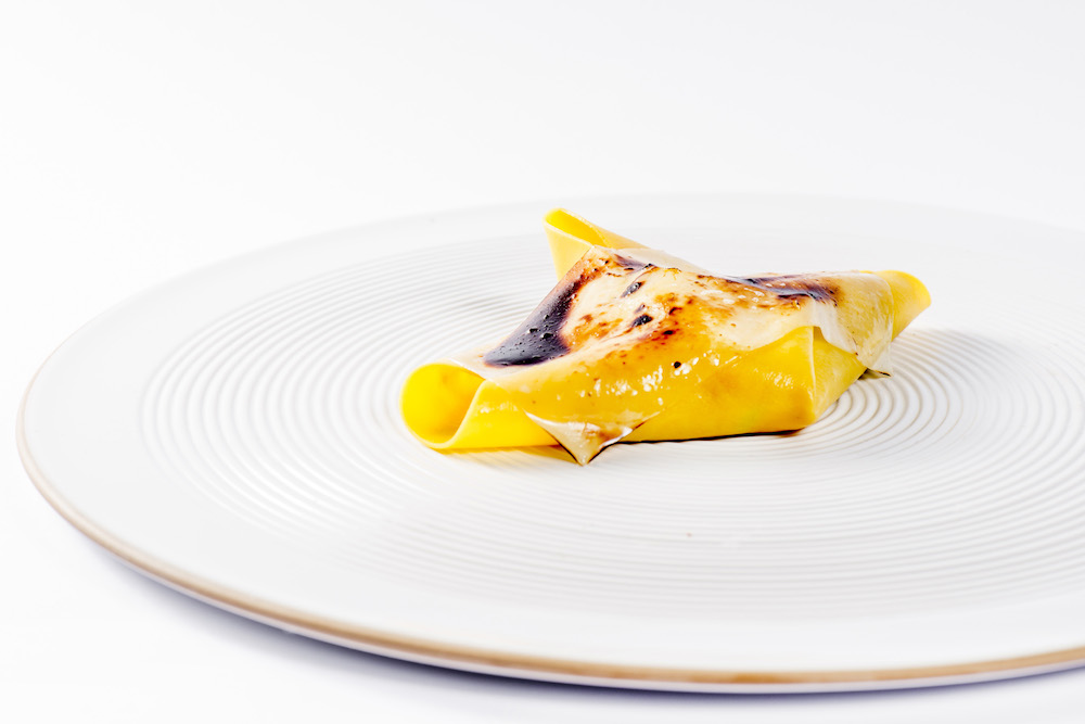Chiude una sfoglia dorata, quasi bruciata, croccante che ci porta a litigare per l’ultimo boccone, come la pasta al forno domenicale della mamma.