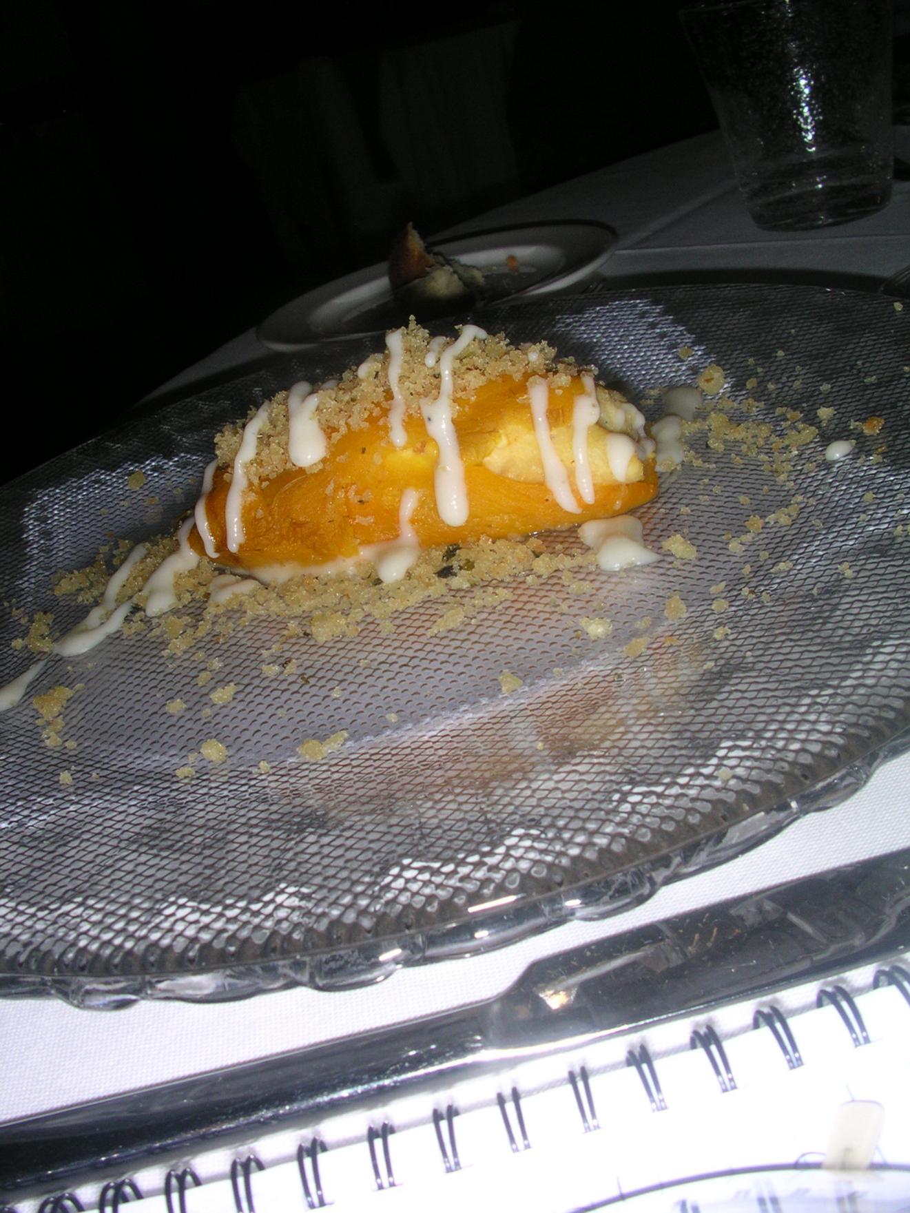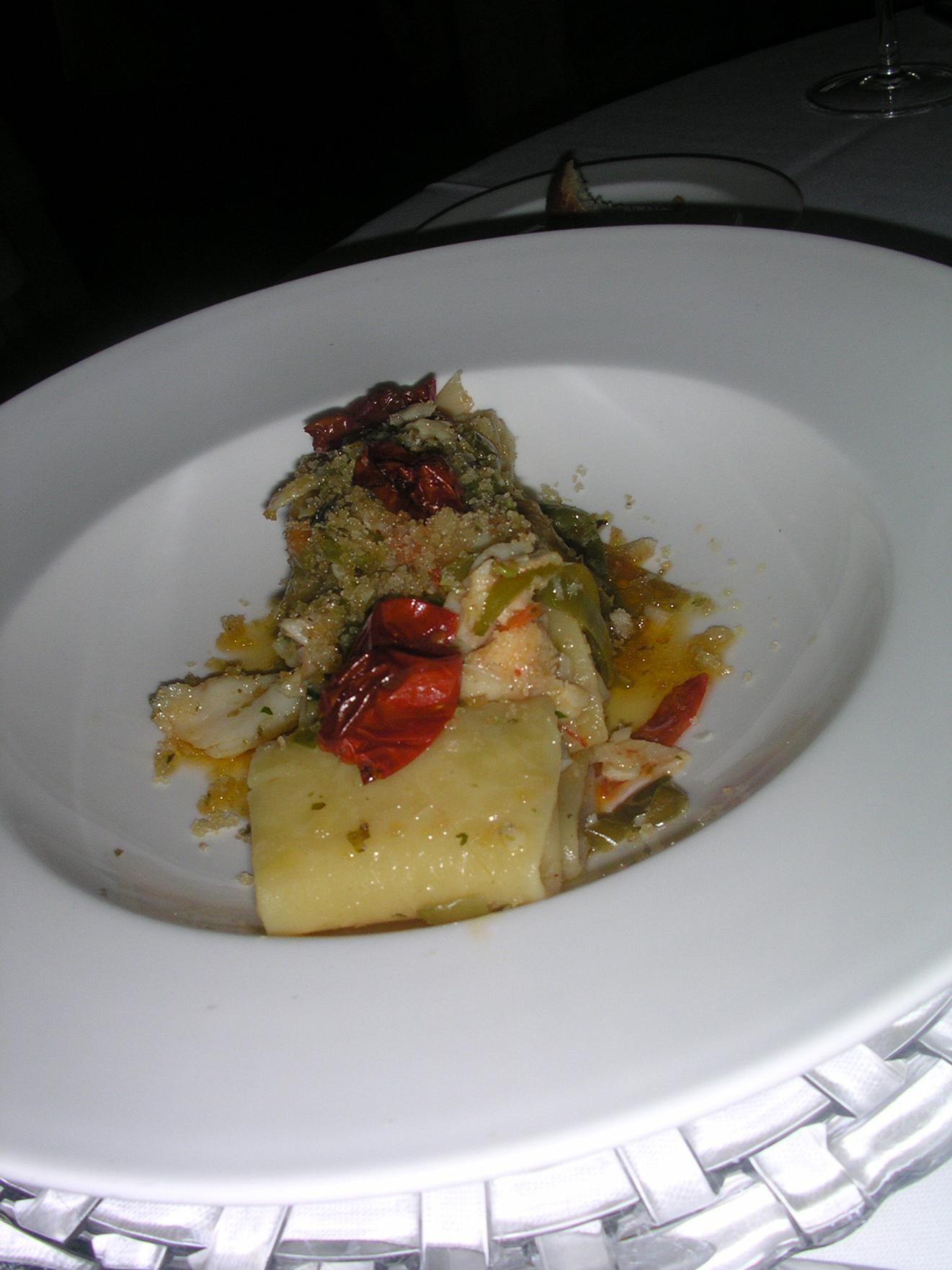 L’esecuzione è stata perfetta: la ricerca sulla materia prima vanta ormai esperienza sul suo comportamento, la cucina cerca maggiormente la rotondità più che l’acidità. Ma siamo nelle zone interne e ci può stare, anche perché non si rinuncia al sapore e alle veracità espressiva delle carni e dei formaggi. Diciamo, come critica benevola, un autunno un po’ anticipato. Ma, ripeto, godibilissimo.