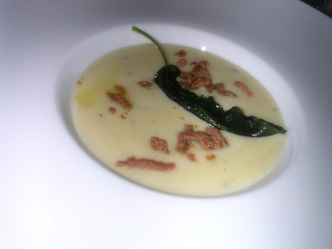 Avendo dimenticato la dentiera a casa, mi sono buttato sulle zuppe. Deliziosa questa di aglio: dolce, eccezionale materia prima di partenza, da cucchiaiare all’infinito.