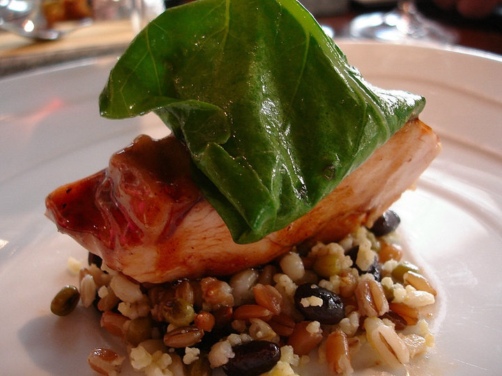 Un passaggio sull’aia con tecnica e cultura, sensibilità e purezza di stile, perché la gallina è morbidissima e le sue granaglie deliziose. La pelle che spesso molti lasciano qui diventa leccorniosa prendendo sembianze di piccola pasticceria, come fosse una tegola di burro e zucchero, invece è pelle di pollo. Ci fosse stato anche un fondo importante di volatile avrei potuto fare paragoni ingombranti, e se deciderai di aggiungerlo, lascialo in un bricchetto o versalo con la grazia di Franck Cerutti , a salsare con discrezione solo l’elemento principale lasciando pulito il sapore dei cereali.