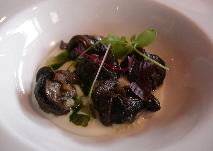 “Lumache di Osasco, Tapinanbour, levitico e arachidi” lumache a mio parer persin troppo “leggere” ma spurgate e cotte alla perfezione. Mia moglie gli ha bocciato gli arachidi per la loro troppa persistenza nel retrogusto.