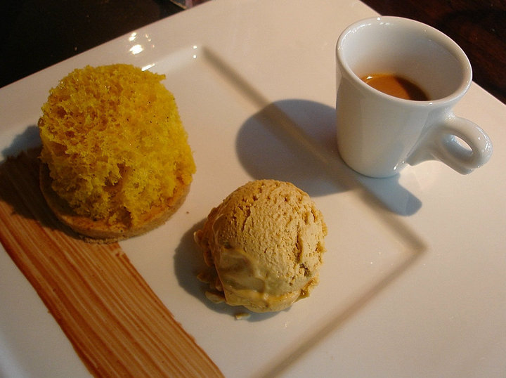“Gelato d’autunno” gelato di funghi con grattata di tartufo bianco d’Alba. Questo a mio parer doveva esser il pre-dessert. Alla faccia del pre-dessert! Forse un po’ troppo freddo! Voi direte, ma è un gelato!?
