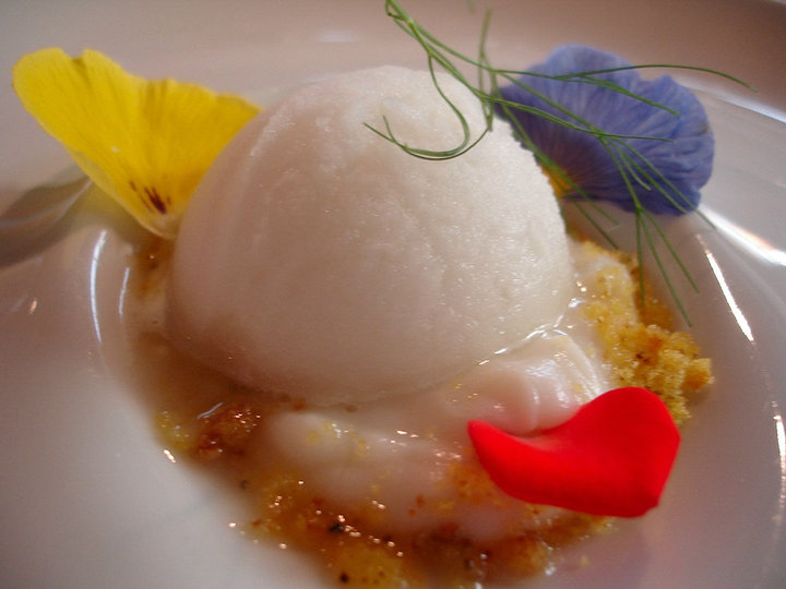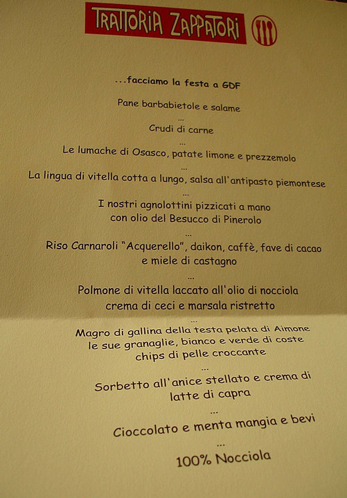 In accompagnamento… Brut riserva 1996 di Contratto e “Promis” di Gaja 2003(?)-(è inutile che ci provo a far il figo, non ricordo. E se non fosse che il menu ce l’ha stampato, non avrei ricordato neanche la metà degli ingredienti, una cosa però me la sarei ricordata bene… Bella, Bella esperienza! Spero di tornarci presto).