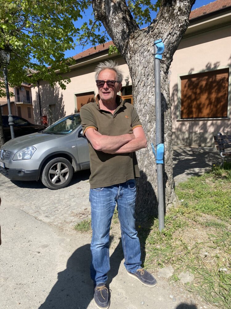 E’ proprio la piazza del paese quella in cui il famoso dipinto fu ambientato, preceduto da due studi altrettanto celebri: Ambasciatori della fame e La Fiumana. Walter si diverte a posare davanti ai tre braccianti leader dell’opposizione pacifica, come fosse uno di loro.