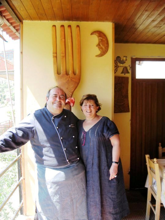 Il suo sorriso placa ogni affanno, ci si rilassa subito, basta affacciarsi dalla meravigliosa terrazza e respirare a pieni polmoni, aria di montagna, mista ai profumi che arrivano dalla cucina. Federico ha preparato un tavolo tondo, segno di convivialità, con un posto libero per lui che va e viene dagli altri, per nulla rumorosi tavoli di ospiti, con la stessa attenzione e voglia di apprendere. Ridendo, il Valicenti mi fa : “qui persone a dieta, come vedi, non ce ne sono.” Alle sue spalle trionfa una spettacolare, gigantesca forchetta in legno, scolpita da un solo tronco e realizzata appositamente per lui da un amico e cliente, artista del nord Europa. Si aprono le danze, – a farvi digerire ci penso io dopo, – dice ridendo Federico. In un attimo la tavola si affolla di giovani camerieri (assunti e formati da Federico dopo il diploma di scuola alberghiera) con una sequenza di antipasti che da sola vale il viaggio. Tutto autoctono, nessuna contaminazione extraregionale. Partiamo dalle bruschette con lardo e crema di peperoni di Senise, ancora fumanti.