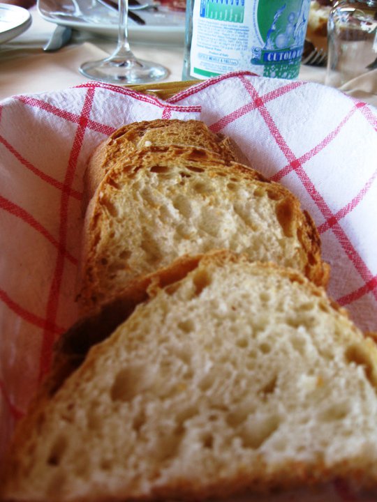 Il pane accompagna un misto di salumi di produzione propria di Federico. Passiamo agli antipasti caldi, siamo preoccupati, Federico ci rassicura: con calma, non c’è fretta .” Due piatti terragni e originali: Tortino di patate rosse con salsiccia lucana e pipi cruschi, poi un divertente omaggio ai 150 anni dell’unità d’Italia: crespelle, o meglio, pettole di farina di grano carosella ( in italiano –maiorca-, si tratta di una varietà che cresce a 1200 mt. con lunghi filamenti simili a capelli, da qui il termine “carusella”).