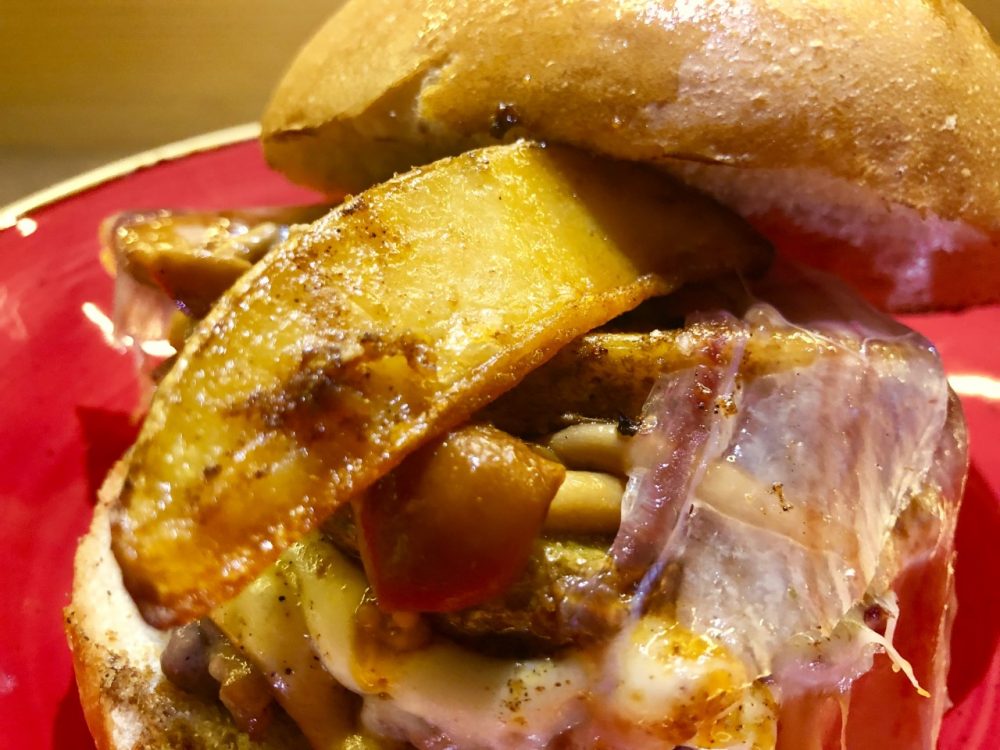 La parte regale la fa la dolcissima pancetta di suino mangalico, fatta da Remigio Aiello, mastro macellaio in quel di Angri. Ma poi ci sono i chiodini, anche locali, dei boschi dell’Irno quando disponibili, la provola affumicata, la salsiccia di macellerie del posto (*), e le patate sabbiate alla paprika, in onore della origine ungherese del suino mangalico. Il risultato? Una pizza e un panino, buonissimi, dove gli ingredienti mantengono inalterati i propri sapori, ma che all’unisono creano una sinfonia del gusto davvero azzeccata. Succulenza, complessità gusto-olfattiva, consistenze, piacevolezza, c’è tutto in questa riuscitissima alchimia chiamata “una mangalica a Baronissi”. Certo, l’asporto non è come sedersi a tavola nei loro locali e godere delle gentili presenze sia della signora Anna, la mamma di Mirko che di Giovanna, compagna di Stefano, ma al momento con le restrizioni vigenti, l’unica soluzione è portarsi a casa questo panino e questa pizza “gemellate”.