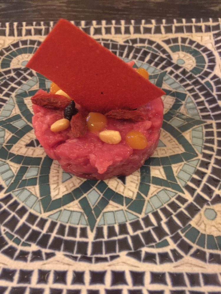 Parleremo un’altra volta, più approfonditamente della cucina, ma già gli antipasti ci hanno convinto. Abbiamo assaggiato un’acquasale che riporta nel piatto tutto il ricordo dei sapori autentici cilentani; una tartare di Scottona condita a freddo con aglio, pinoli e crema di pecorino per restituire il sapore della braciola della domenica. Asciutta, gustosa e golosamente filante la frittatina di pasta.