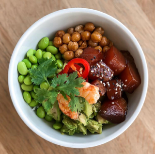 The Botanical Club – Poke’ di tonno, gamberi, coriandolo, avocado, jalapeno, edamame, ceci soffiati e salsa teryaki