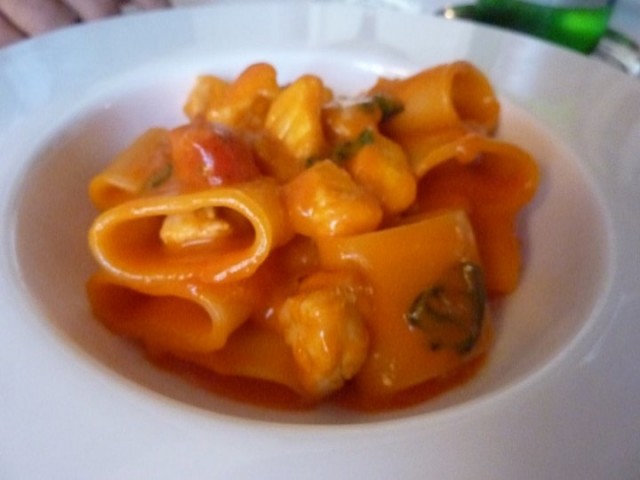Mezzi paccheri con pomodorini del piennolo e pesce di scoglio @@@