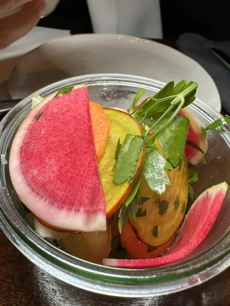 Il locale è molto newyorkese, quella New York fuori dalla vetrina di Manhattan diventa più bella e affascinante, Luci soffuse, l’area di lavoro in fondo al centro del locale come il palco di un teatro. La proposta è molto semplice, due apetizers per iniziare, olive marinate e lupini e verdure disidratate. Per terminare il gelato o il sorbetto di frutta fresca, l’altra grande passione di Anthony. In mezzo Marinara, Margherita, Bianca, Filetti, Cosacca a cui è possibile aggiungere ingredienti extra come peperoncini lunghi calabresi, salame, acciughe e una pizza speciale che ogni giorno cambia, in base a cosa trova al mercato.
