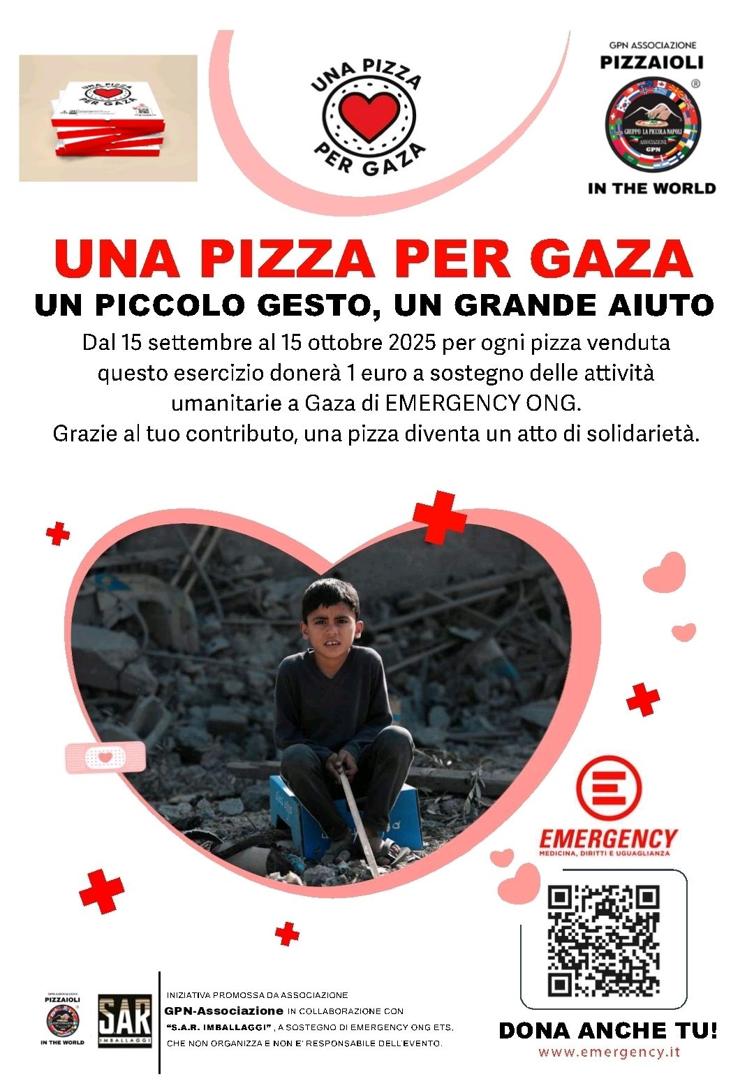 L’obiettivo è coinvolgere il maggior numero di pizzerie in tutta Italia per destinare 1 euro per ogni pizza venduta al sostegno di Emergency, che opera in Palestina con progetti sanitari e ospedalieri dedicati alla cura delle persone colpite dalla guerra, in particolare i bambini.