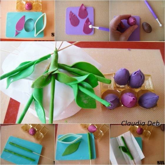 Infine assembla i tulipani: se l’ovetto è ripieno, infilza lo stecco nel centro del bocciolo altrimenti applica della gelatina sull’estremità superiore dello stelo, adagia il bocciolo premendo delicatamente e fai asciugare in verticale (magari infilzando i fiori su una base di polistirolo).