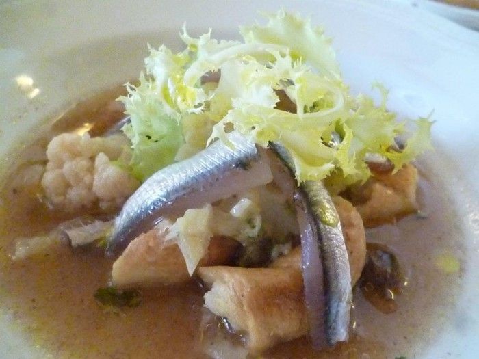 Il benvenuto ci riporta però in Costiera, un cefalo fresco su un po’ di misticanza è molto buono. Così doverso dal modo tradizionale di cucinare questo pesce azzurro ex povero.