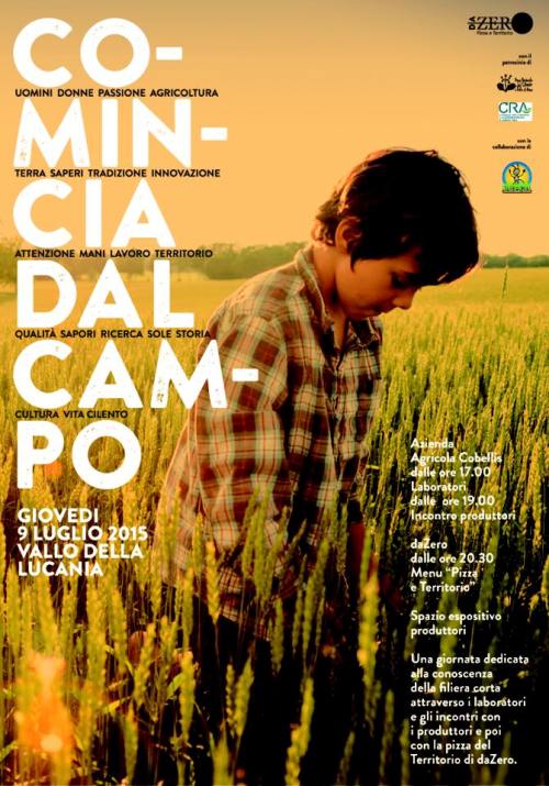 L’appuntamento, che promette d’essere un momento d’incontro e conoscenza, oltre che una festa, è in programma per il 9 luglio 2015 ed è articolato in tre momenti: dalle ore 17 i laboratori, a seguire alle 19 il racconto/incontro dei produttori partecipanti all’iniziativa. Le due attività si svolgeranno presso l’Azienda Agricola Cobellis ed il caseificio Le Starze che produce mozzarella nella mortella. Per il terzo momento ci si sposterà dal campo ai locali di “daZero”, dove sarà organizzato uno spazio espositivo per i produttori nella piazza antistante la pizzeria a Vallo della Lucania (SA).
