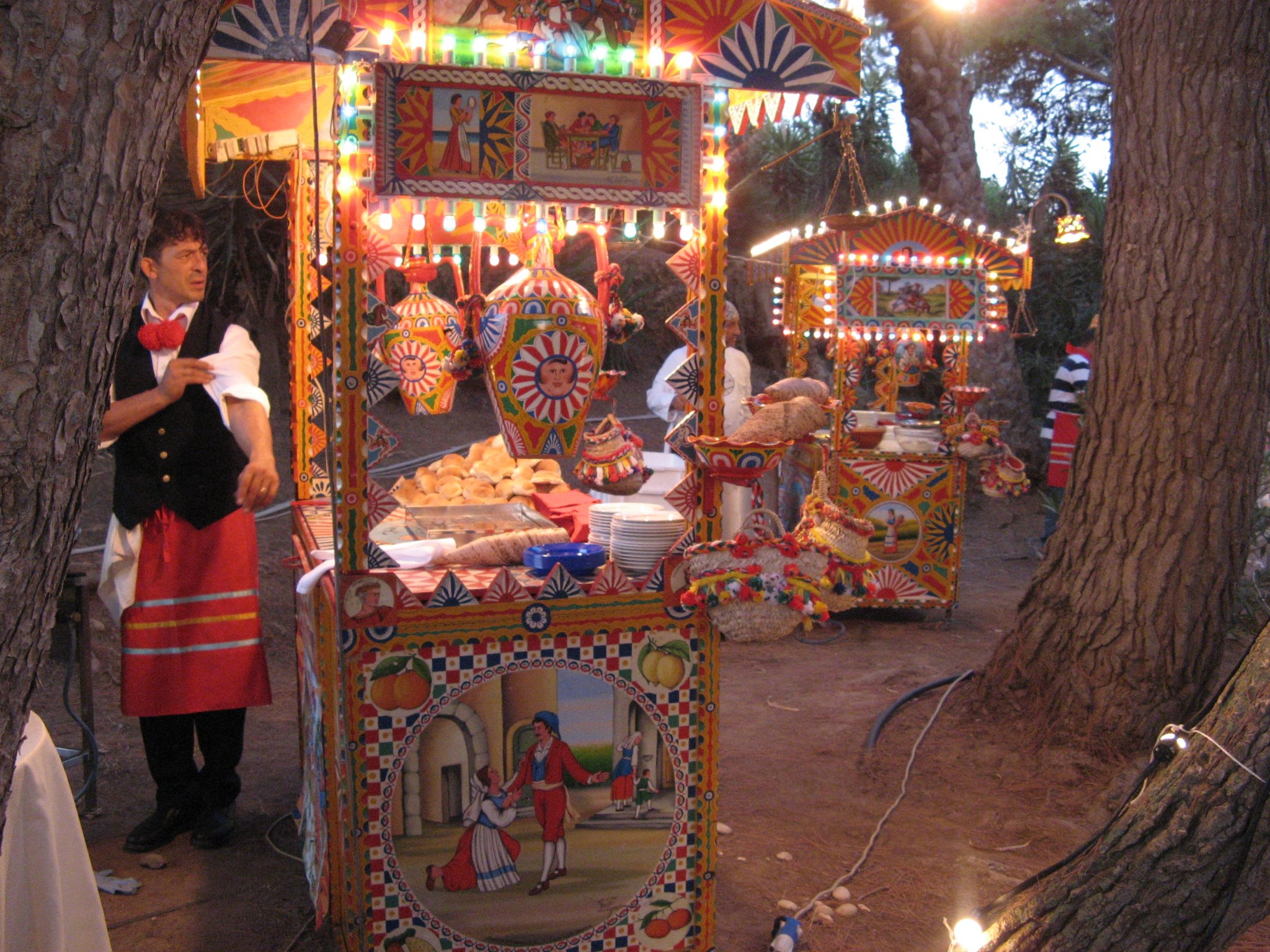 Dopo la vendemmia, sempre punzecchiati dai due conduttori radiofonici, siamo stati condotti in visita alla bellissima riserva naturale lungo le dune che costeggiano la spiaggia dove in uno scenario quasi fiabesco sono stati offerti i tradizionali cibi da strada siciliani, riproducendo con festose e coloratissime bancarelle l’atmosfera del famoso mercato palermitano della Vucciria.