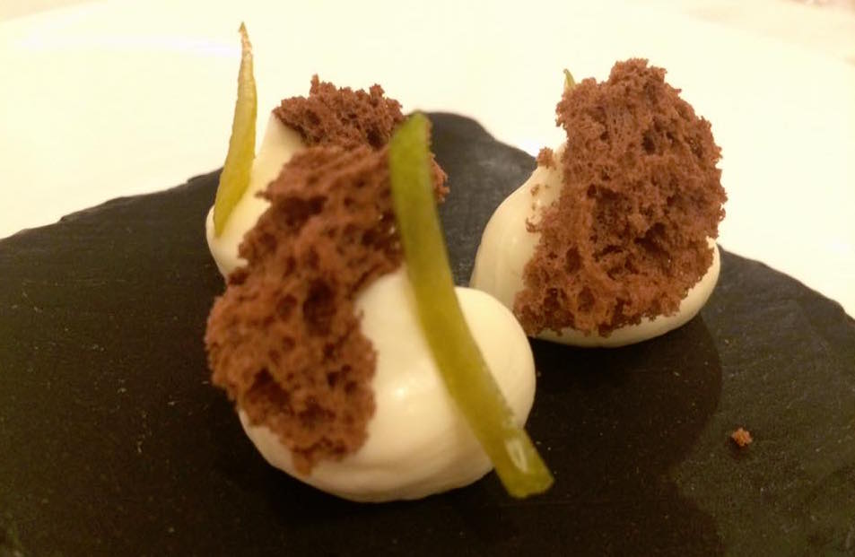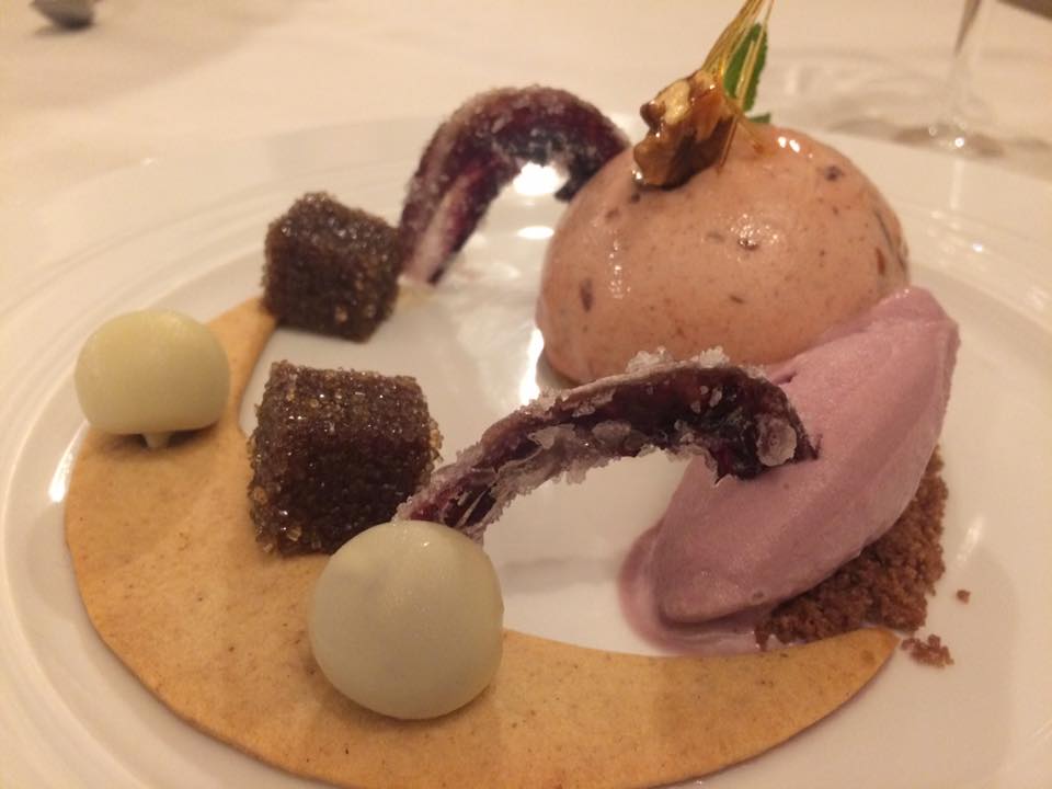 Chiusura interessante con un delizioso pre dessert al caprino e un dessert al radicchio molto ben riuscito: bavarese con biscotto alle noci, gelato di vino rosso e miele. Per nulla stucchevole, moderno nell’impostazione e nella prevalenza dei toni amari, amarissimi a tratti, davvero una chiusura più che piacevole.