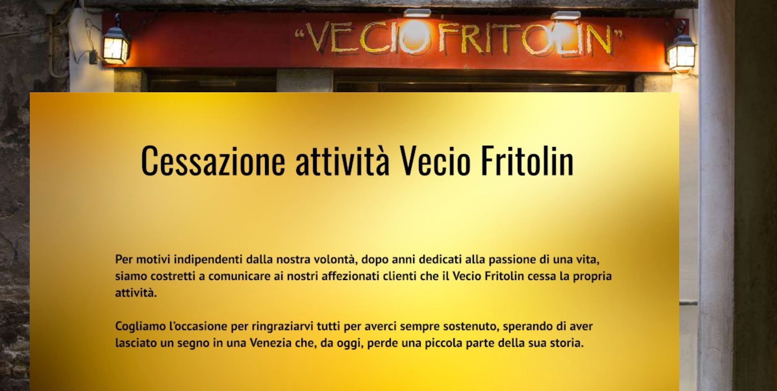 Vecio Fritolin, l’annuncio della chiusura sul sito web del ristorante