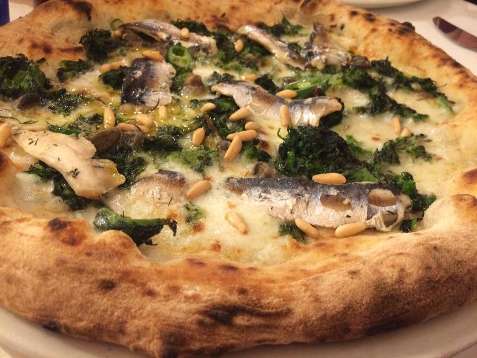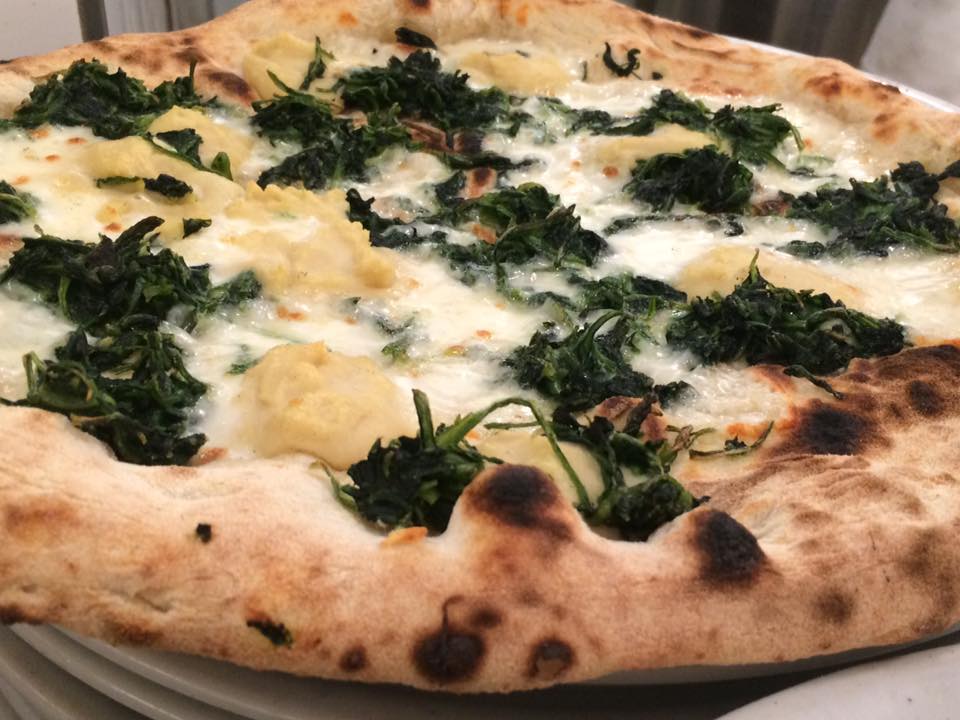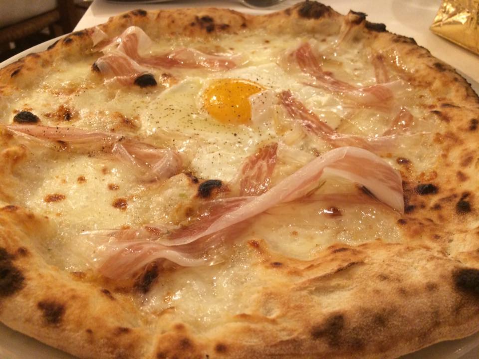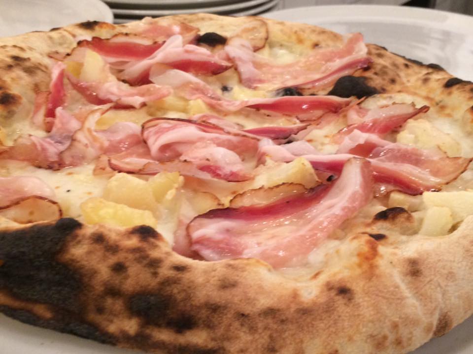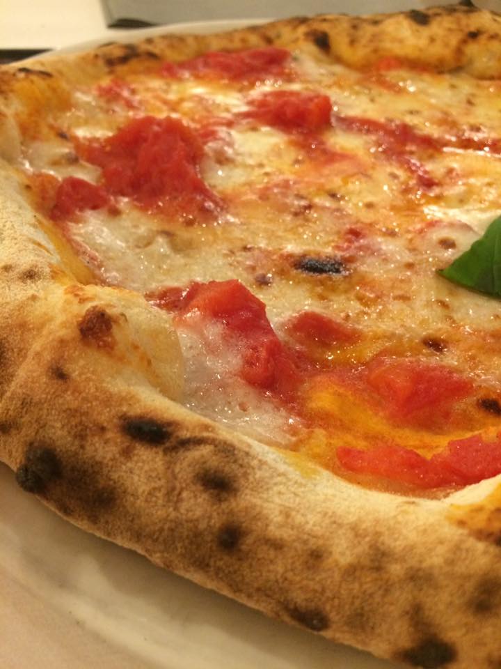 Impossibile non partire dal classico dei classici: la margherita è davvero buona, non c’è preponderanza di pomodoro (San Marzano Dop), è ben condita, il fiordilatte di Agerola non tradisce nella filatura. La base è morbida ma non elastica come nella napoletana tradizionale, il cornicione è basso e si lascia mangiare, e nel complesso risulta leggera per digeribilità, più che per peso specifico.
