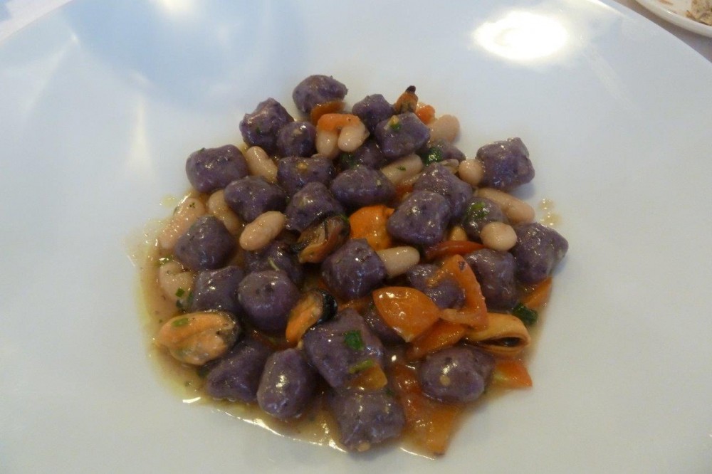 I sapori di terra e di mare, gnocchetti di patate viola cozze e cannellini