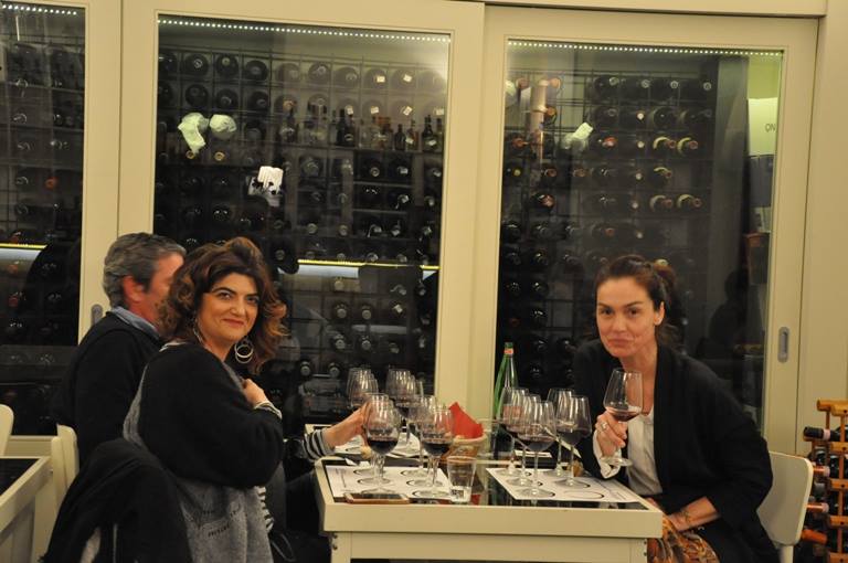 verticale degli Aglianico del Vulture Roinos di Eubea e Likos di Mastrodomenico, Mario Lombardi e Marina Alaimo con le produttrici Eugenia Sasso ed Emanuela Mastrodomenico