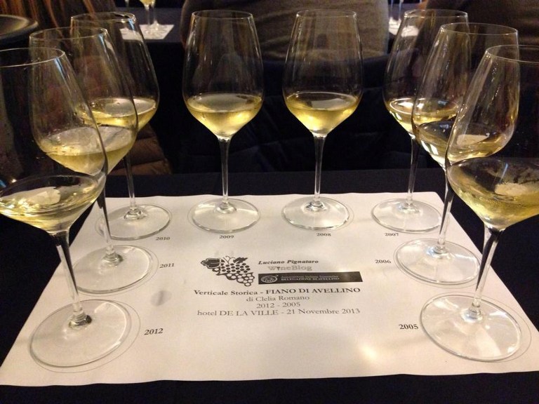 Il rapporto di questo vino con il tempo si concretizza in termini di alleanza e non semplicemente di resistenza. Mi spiego meglio : altri bianchi riescono a resistere al tempo magari allo stesso modo , ma mentre gli altri, appunto, resistono soltanto, il Fiano si evolve!!! E’ questa la straordinaria capacità di questo vino…E quindi, lo scopo di questa verticale, organizzata in collaborazione con gli amici dell’A.I.S. di Avellino e regionale, era proprio quello di verificare l’evoluzione del vino nel corso degli anni. Nella descrizione che segue, accanto all’annata è riportata anche la valutazione dell’Asso-enologi regionale.