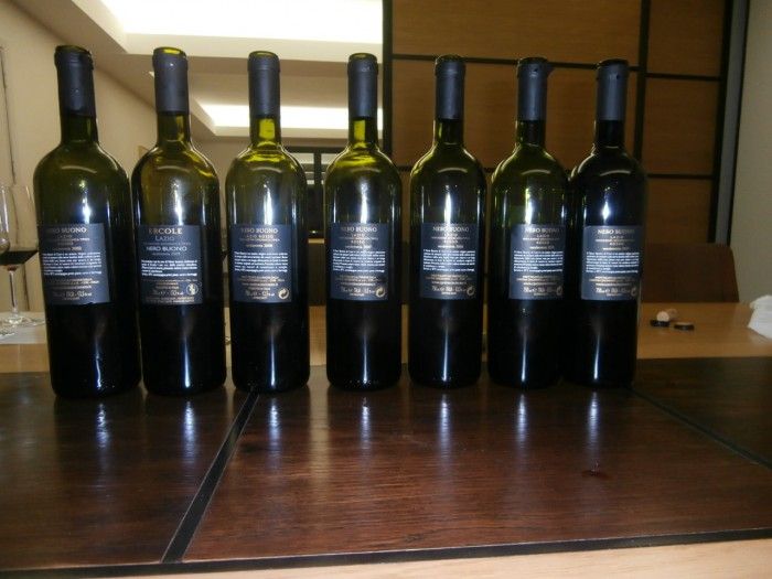 Abbiamo iniziato con il Polluce 2010, nero buono base un vino venduto a meno di 3 euro che si può acquistare a 5-6 euro . Note varietali tipiche al palato di more e frutta di bosco e di viola. Buona tannicità al palato con una leggera astringenza e discreta morbidezza…un vino immediato, un campione per rapporto qualità/prezzo