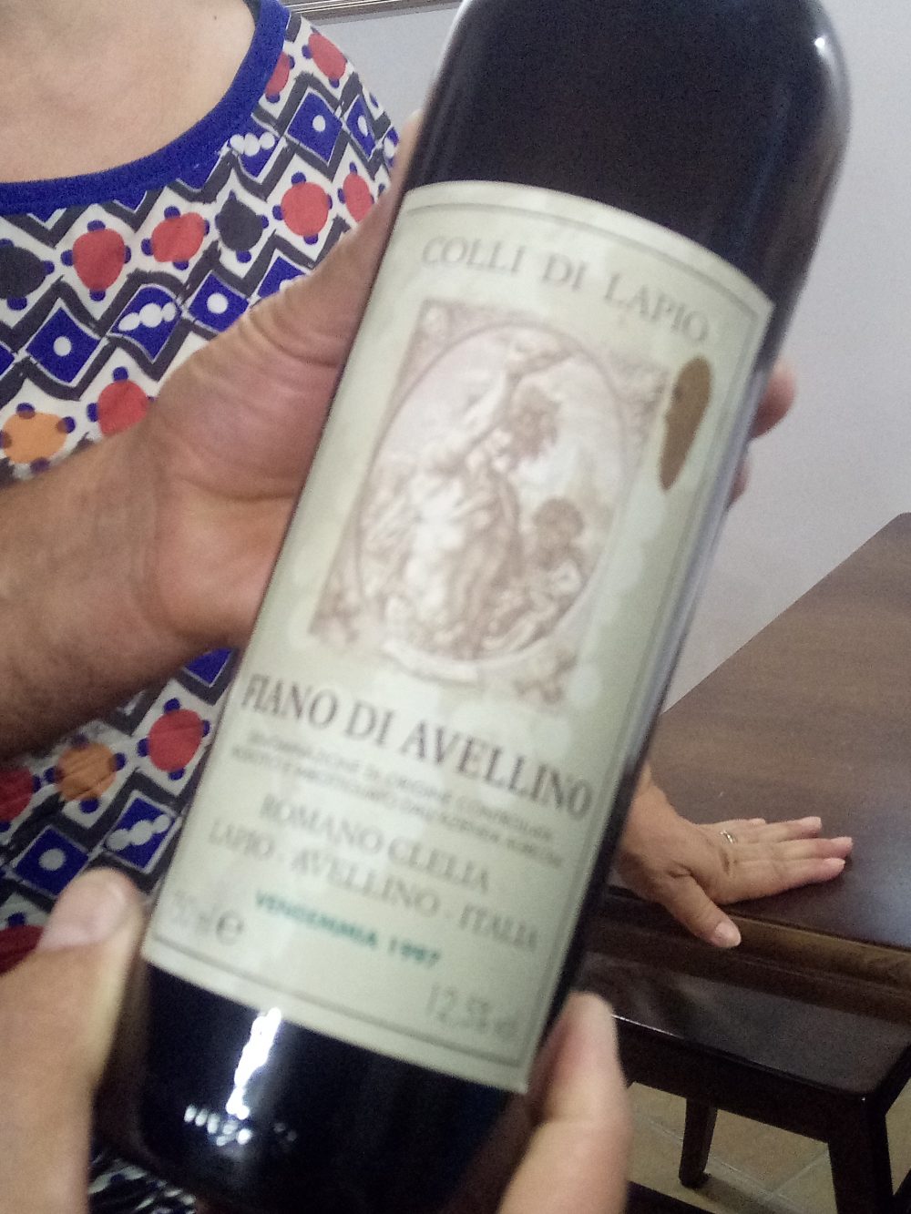 Fiano di Avellino 2004 – E qui non so da che parte cominciare. La degustazione di questo vino mi manda in crisi. Intanto diciamo due cose importanti, le prime che mi vengono in mente: primo, aveva ragione Francesco a rammaricarsi che non si è potuto assaggiare questo millesimo a casa di Luciano, anche se qui si è rifatto ampiamente. Secondo, personalmente amo molto i vini bianchi francesi della Borgogna a base di Chardonnay: Chablis, Corton-Charlemagne, Meursault, Montrachet e Pouilly-Fuissé, che ritengo insuperabili. Ma credetemi questa bottiglia non sfigurerebbe . Emozione allo stato puro. Il Maradona degli anni d’oro ’86 e ’87. Resistenza al tempo infinita, forse ancora di più di un Riesling alsaziano. Clelia e Carmela mi dicono che conservano gelosamente soltanto una trentina di bottiglie di quest’annata, insieme a qualche millesimo ancora più vecchio, come uno del 1997. Tenetevele ben strette, mi raccomando, perché si tratta di un patrimonio inestimabile ed impagabile da serbare con cura.