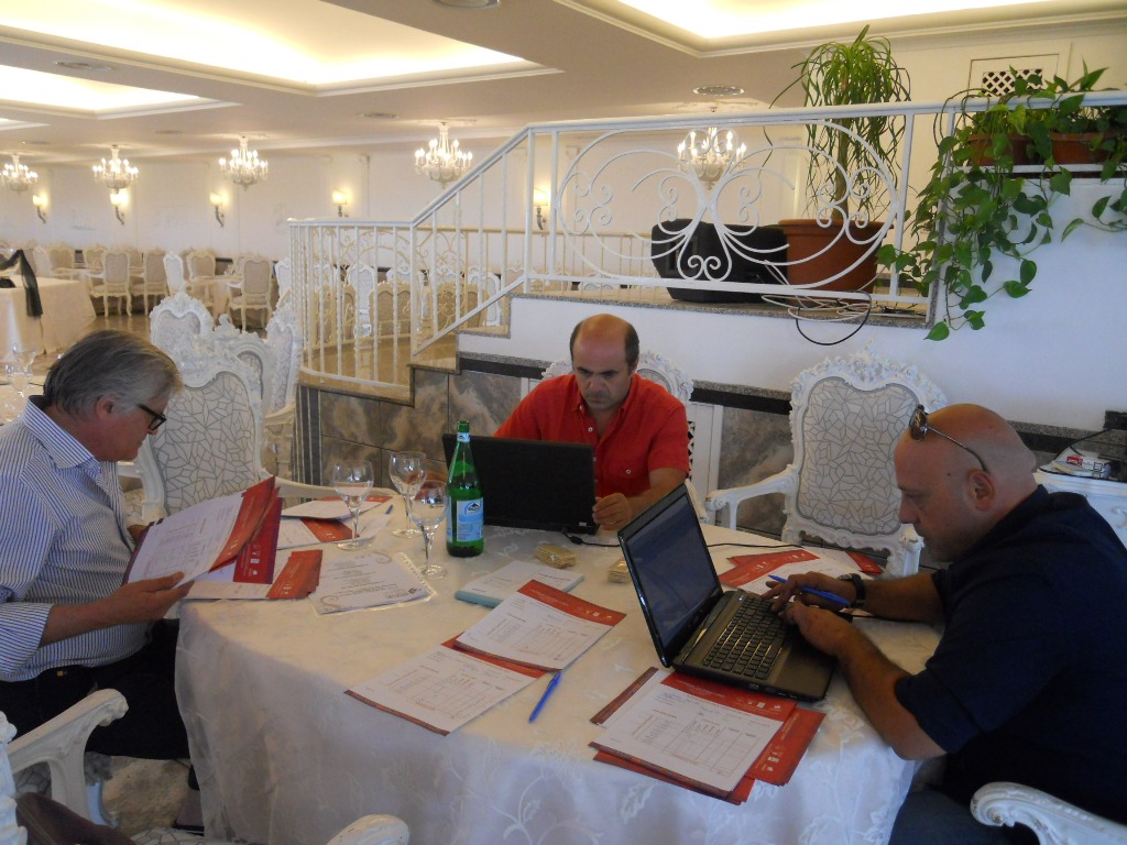 All'opera per il calcolo dei punteggi assegnati. Da sinistra: Lodovico Pagano, Sergio Romano e Antonio Pesce